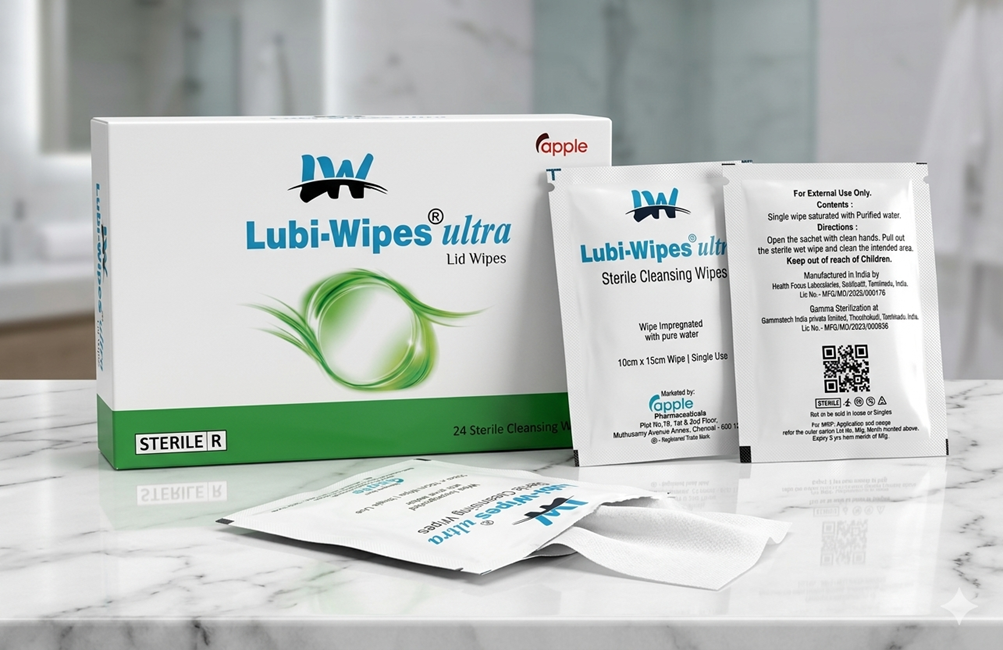 Lubi-Wipes Ultra is a premium sterile eyelid cleansing wipe designed for advanced daily lid hygiene, deep cleansing, and soothing care of sensitive eyelids. It helps gently remove crusting, oil deposits, dried secretions, dust, allergens, and debris from the eyelid margins and eyelashes.